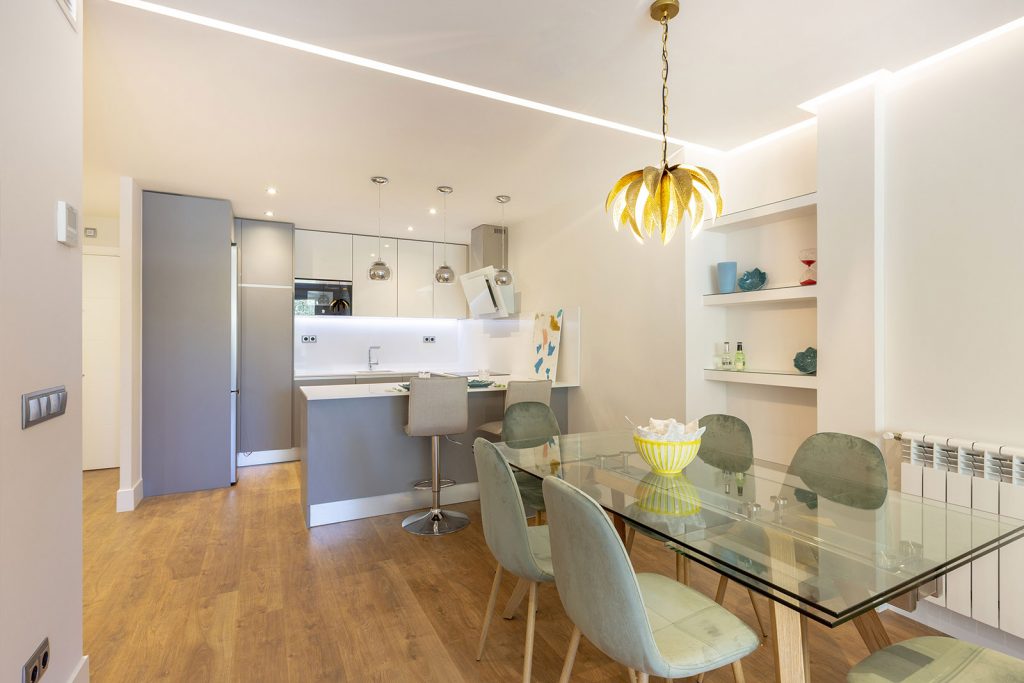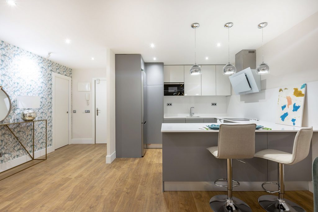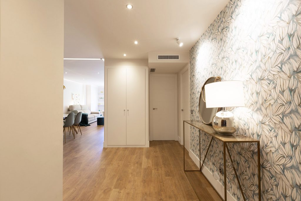 Piso diseñado con atrevidos papeles en un espacio que desafía las convenciones tradicionales de la decoración y se destaca por su audacia y originalidad.